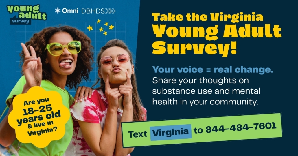 Now until April 30th, 2026, YOU can help shape mental health supports in our community by taking the Virginia Young Adult Survey.